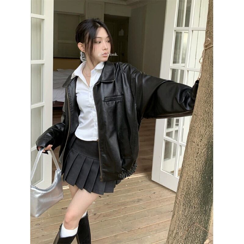 香港スタイルのレトロなファッションスーツの女性の 2024 春の新作ジャケットレザーコートスリムプリーツスカート 2 点セット スプリング 春物 S921931145131559
