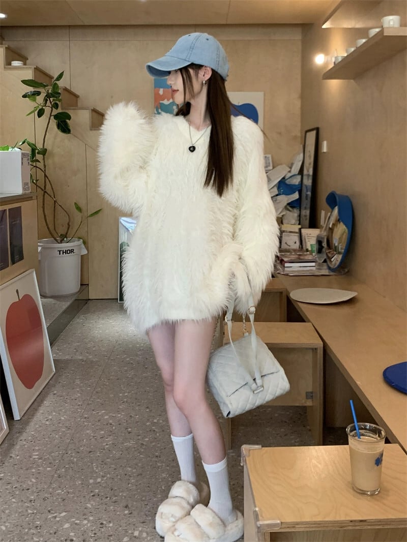 -終了模造ミンクファーソフトワックス長袖セーター女性春 2024 新しいミッドレングスルーズ痩身セーター ロング スプリング 春物 S921916170413552