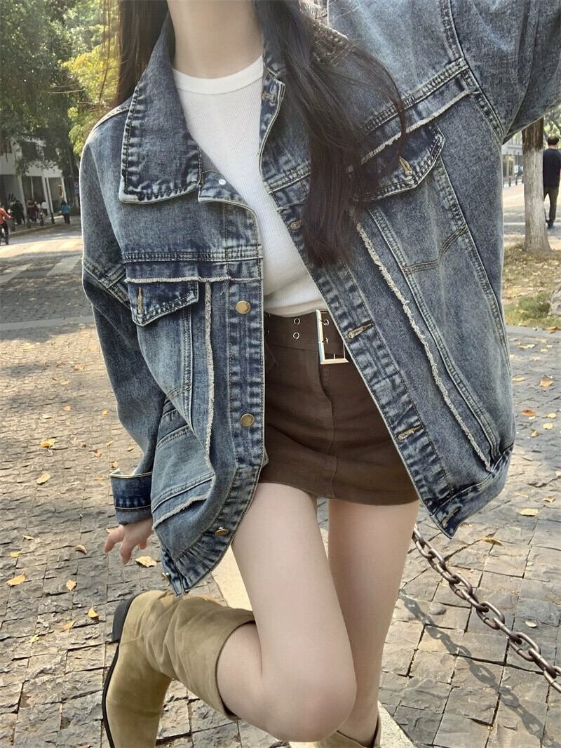 香港スタイルのレトロな生エッジ洗浄デニムジャケットの女性の夏 2024 新デザイン eign スタイル多用途カーディガントップ サマー 夏物 S921961381869237