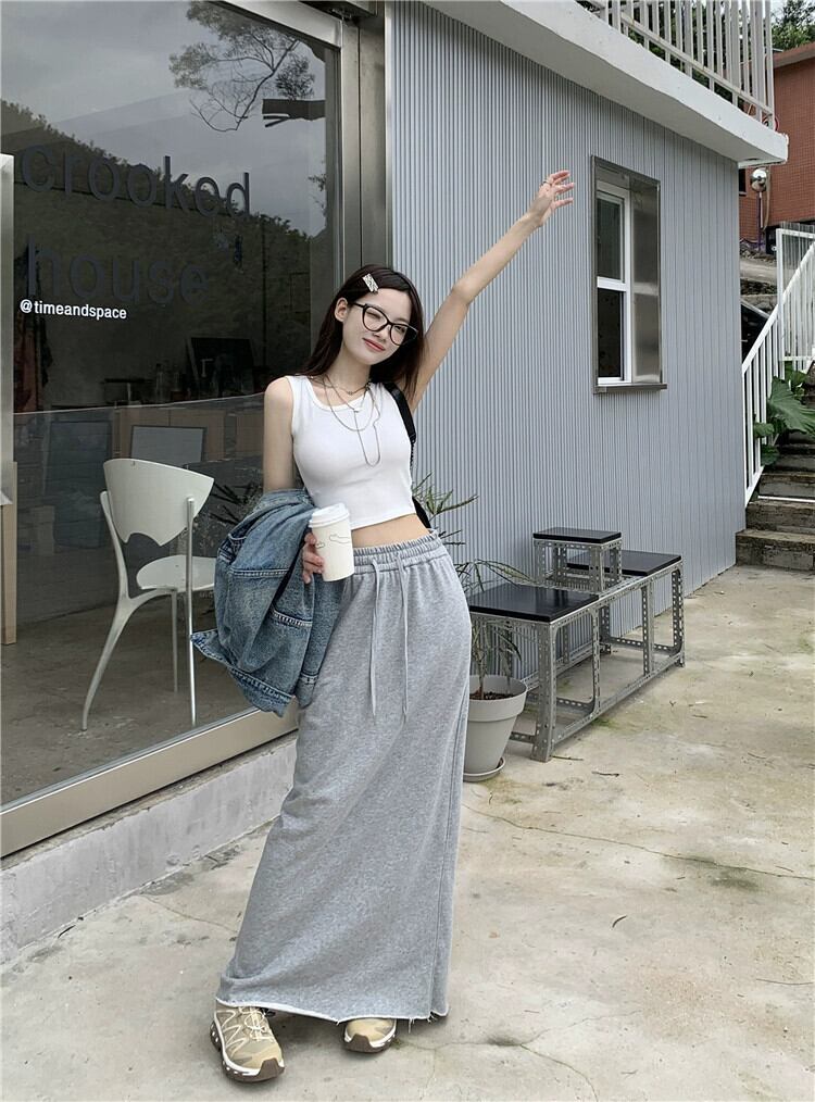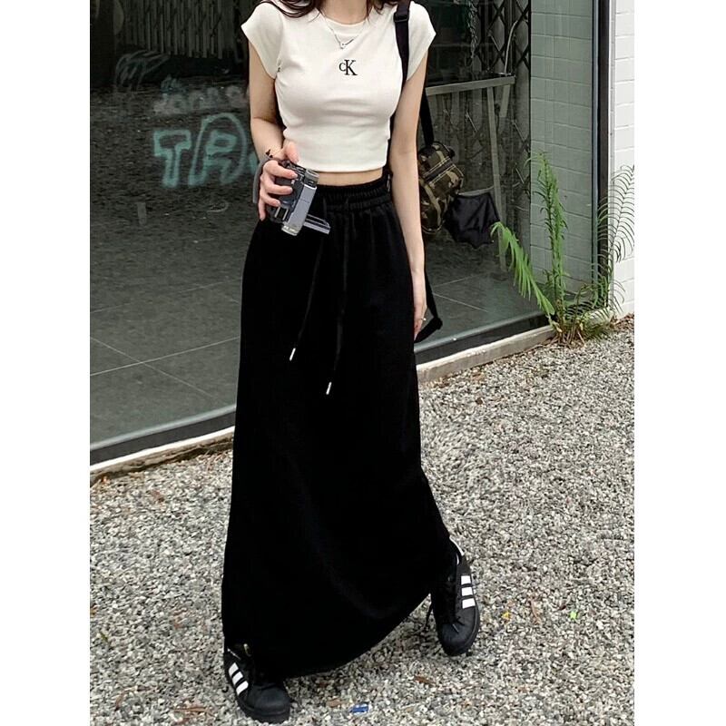弾性ハイウエスト痩身ストラップスカートレディース 2024 夏の新しい汎用性の高いストレートヒップカバーミッドレングススカート エラスティック 伸縮 サマー 夏物 S921930161744495