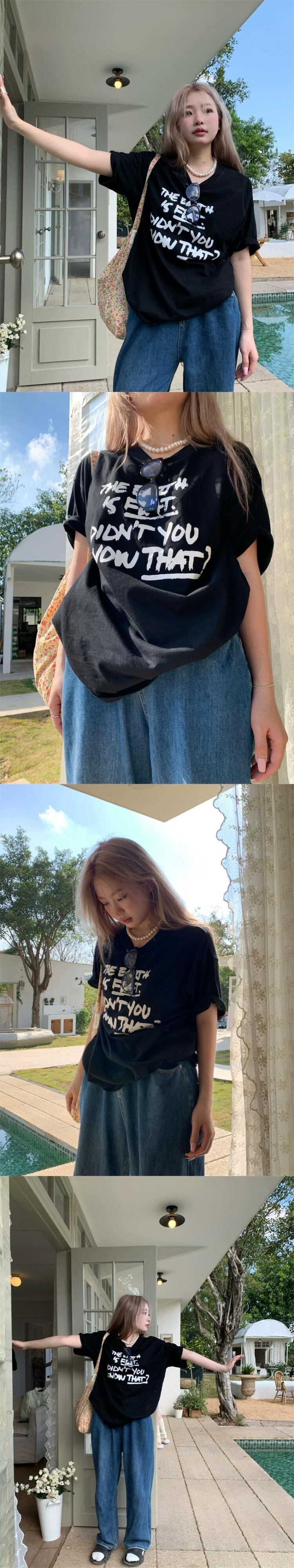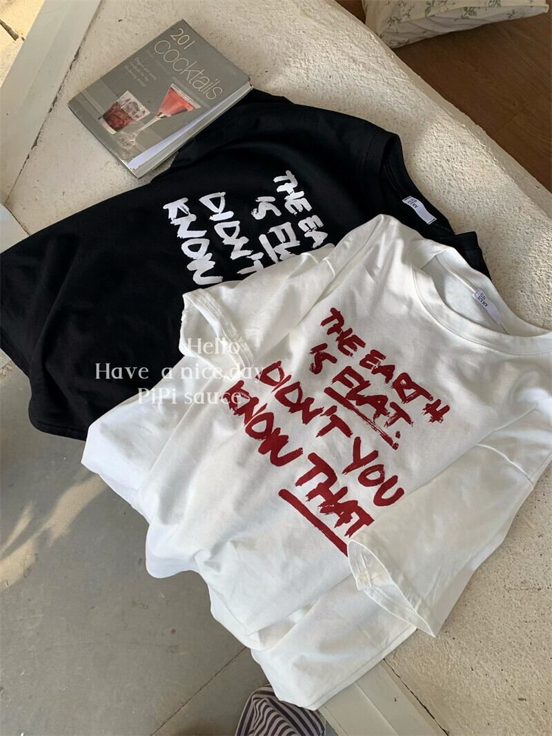 レタープリントルーズ半袖 Tシャツ女性の夏 2024 新しい多用途デザインスリミングボトリングシャツトレンディなトップス サマー 夏物 S921992708463240
