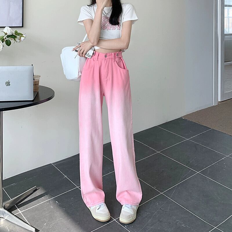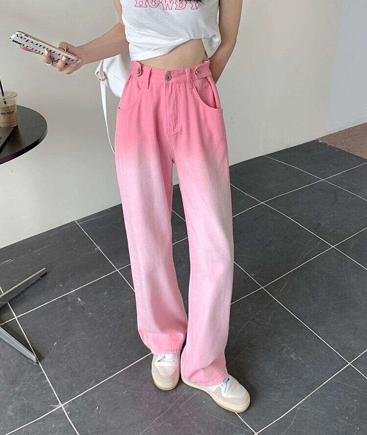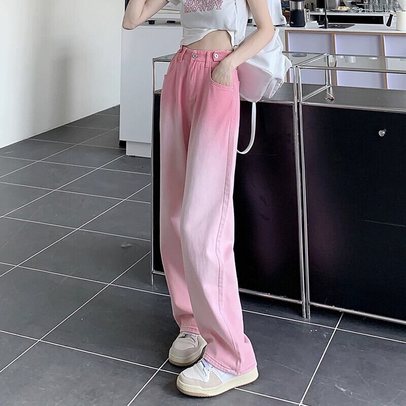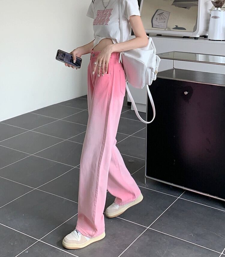 グラデーションピンクハイウエストドレープジーンズ女性春 2024 新しい多用途ルーズ痩身ワイドレッグフロアモップパンツ ハイウェスト スプリング 春物 ワイドパンツ S921975260477342