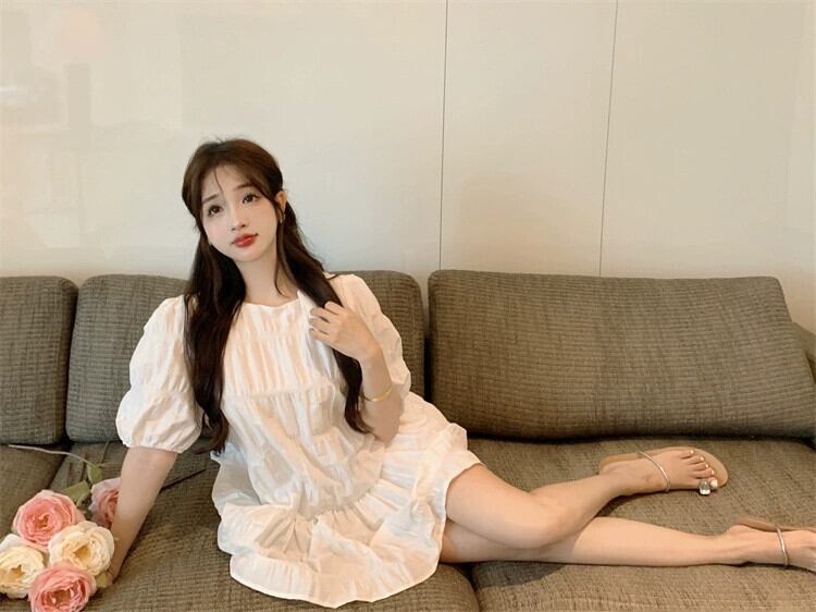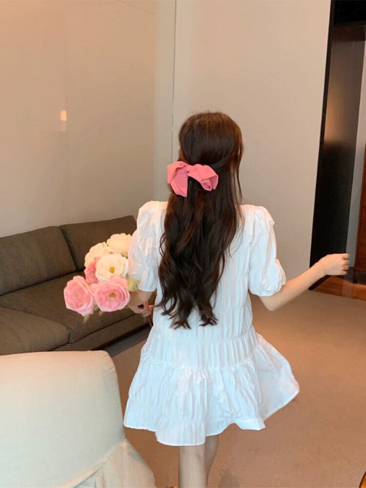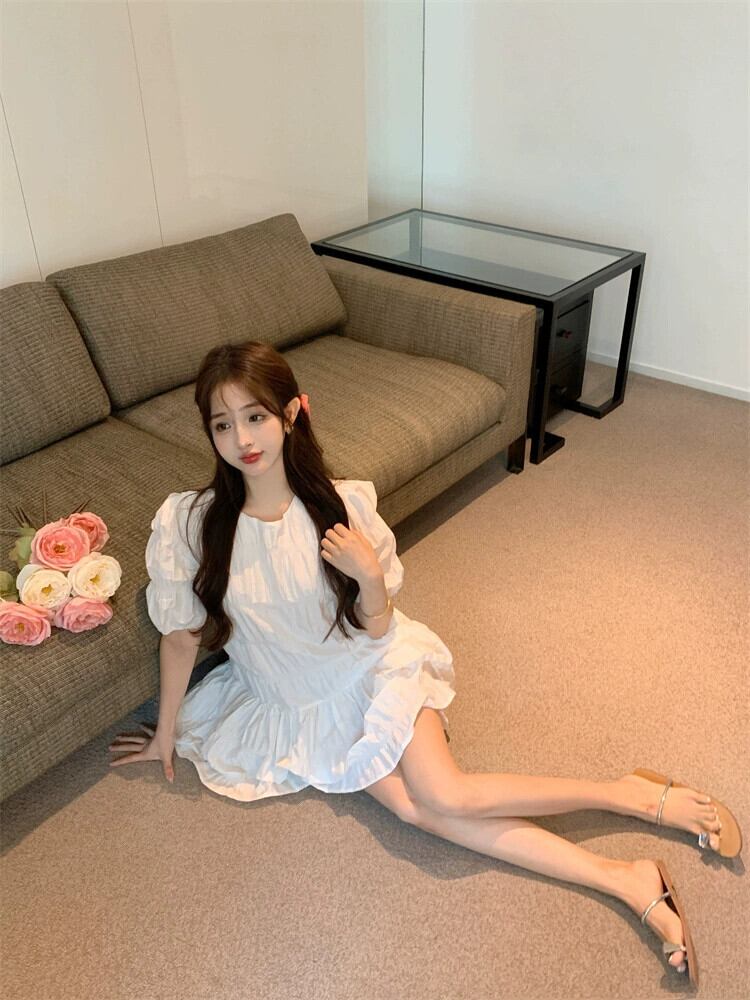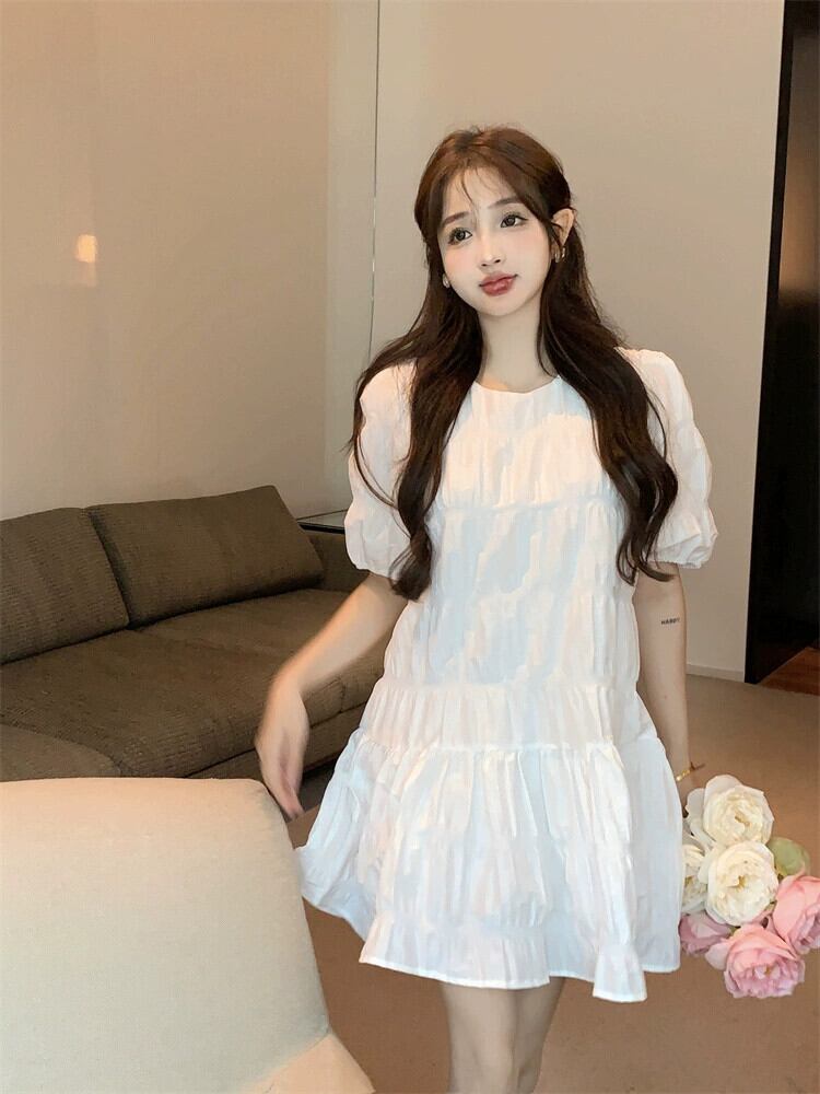 フレンチスイートスタイルパフ半袖ドレス女性の夏の2024新しいスタイルプリーツ痩身多目的Aラインスカート 大人ガーリー スウィート キュート カジュアル サマー 夏物 S921968174114003