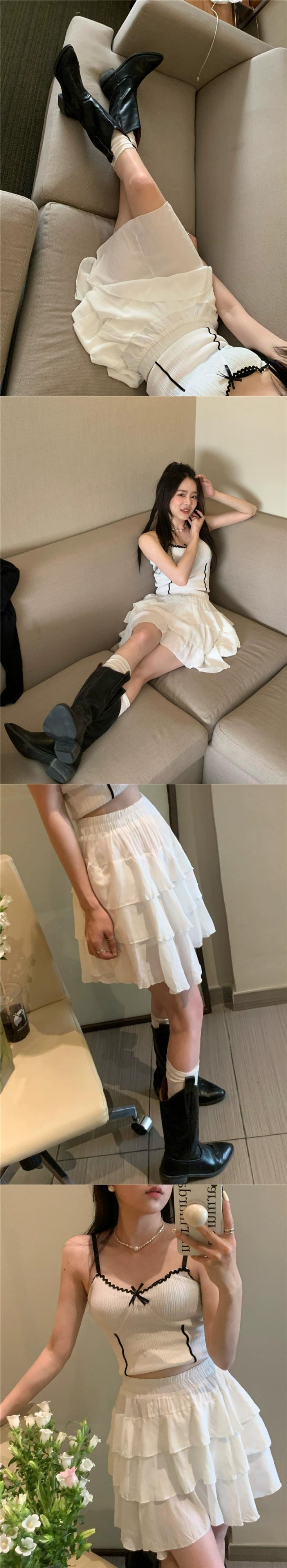 甘いバレエハイウエストスカートの女性の夏 2023 新年齢削減痩身ソリッドカラー多目的ケーキスカート 大人ガーリー スウィート キュート カジュアル サマー 夏物 S921996769711637