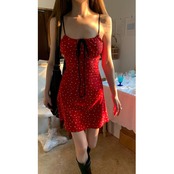 気質レトロな赤花柄サスペンダードレスの女性の夏 2023 新しいスタイルストラップウエスト痩身 A ラインスカート レッド サマー 夏物 Aライン S921920488468291