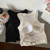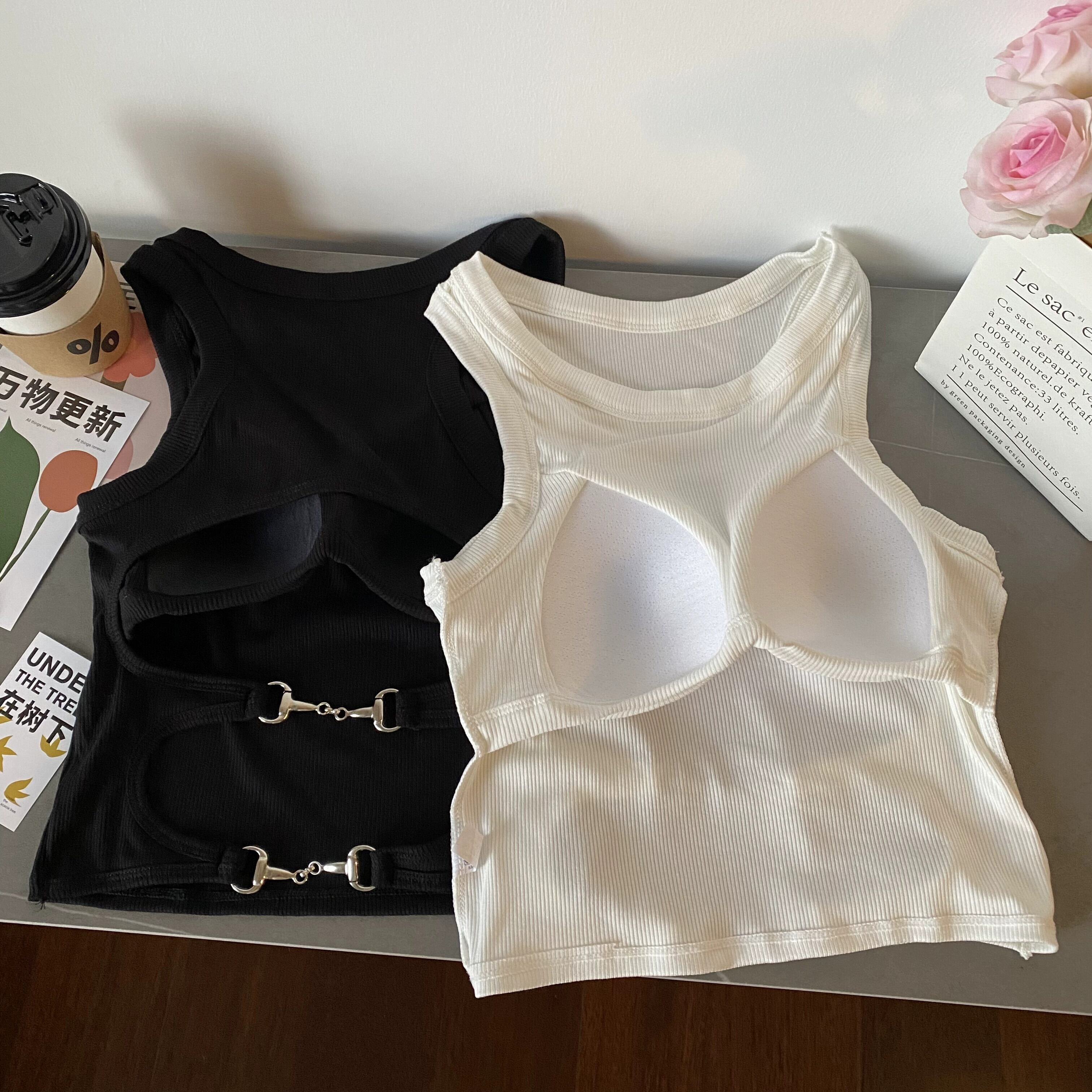 ホットホルタートップと胸パディングキャミソール女性の夏 2024 新しいスタイルショートスリムスリムアウターノースリーブトップ サマー 夏物 S921993385822688