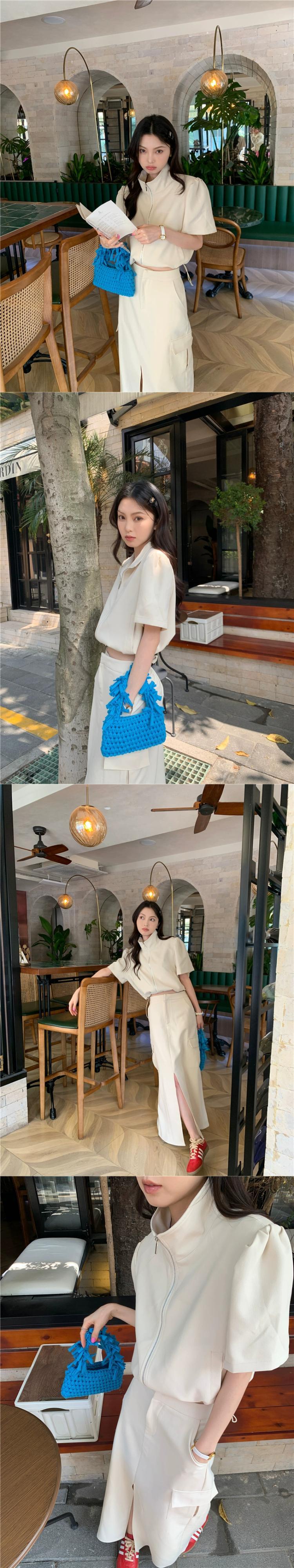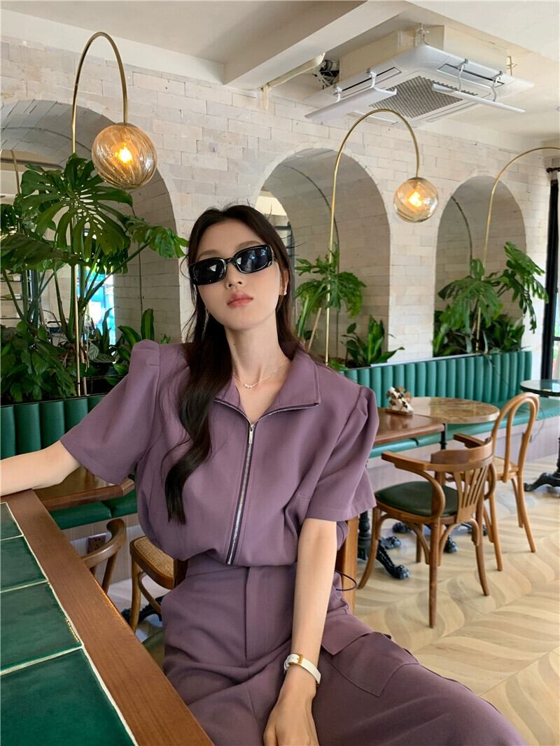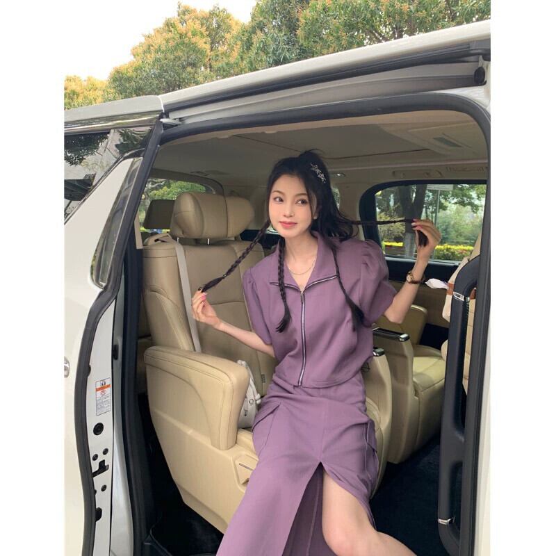 デザインニッチファッションスーツ女性 2024 夏の新しい半袖ジッパートップとスカートの 2 点セット サマー 夏物 S921911752551717