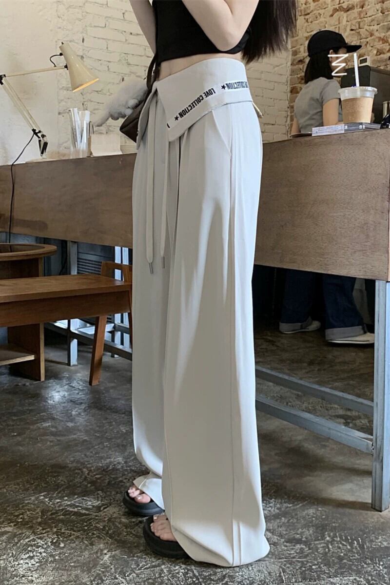 有能ウエストバンド袖口レターパンツ女性の夏 2023 多用途気質ウエストスリムスーツパンツ サマー 夏物 S921934724231025