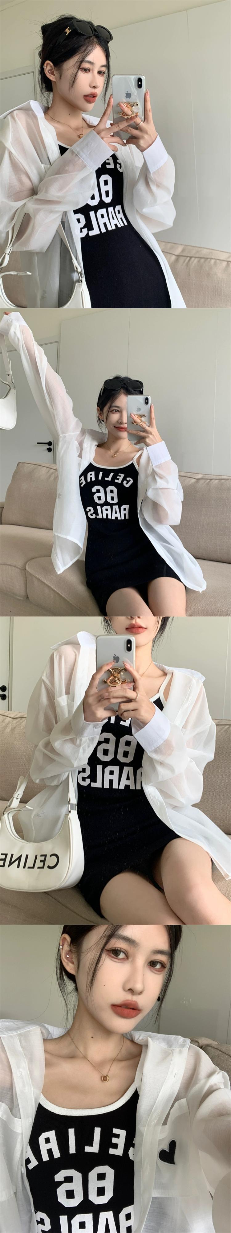 ホットレタープリントサスペンダードレス女性の夏 2024 新しい気質痩身スリムアウターショートスカート サマー 夏物 S92199105937085