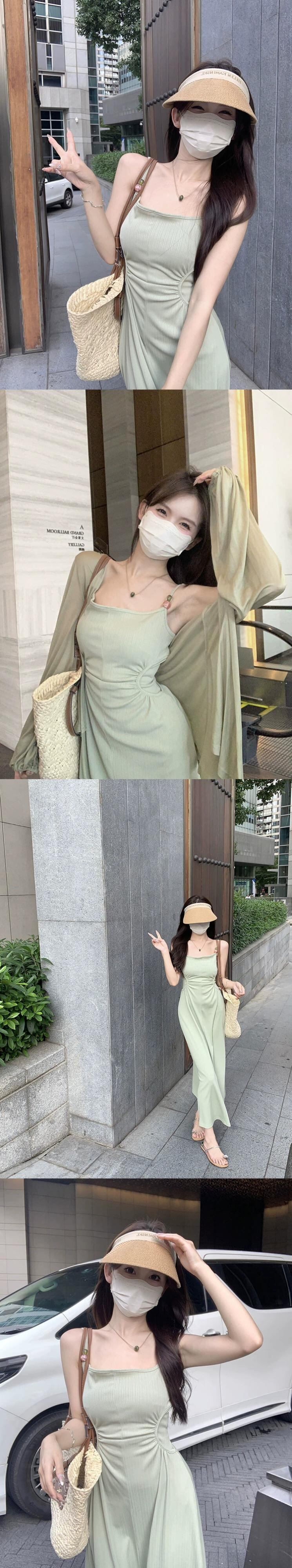 純粋な欲望優しいスタイル無地サスペンダードレス女性の夏の 2024 新しいスリムフィットヒップカバーニットロングスカート サマー 夏物 ソリッドカラー S921929055642332