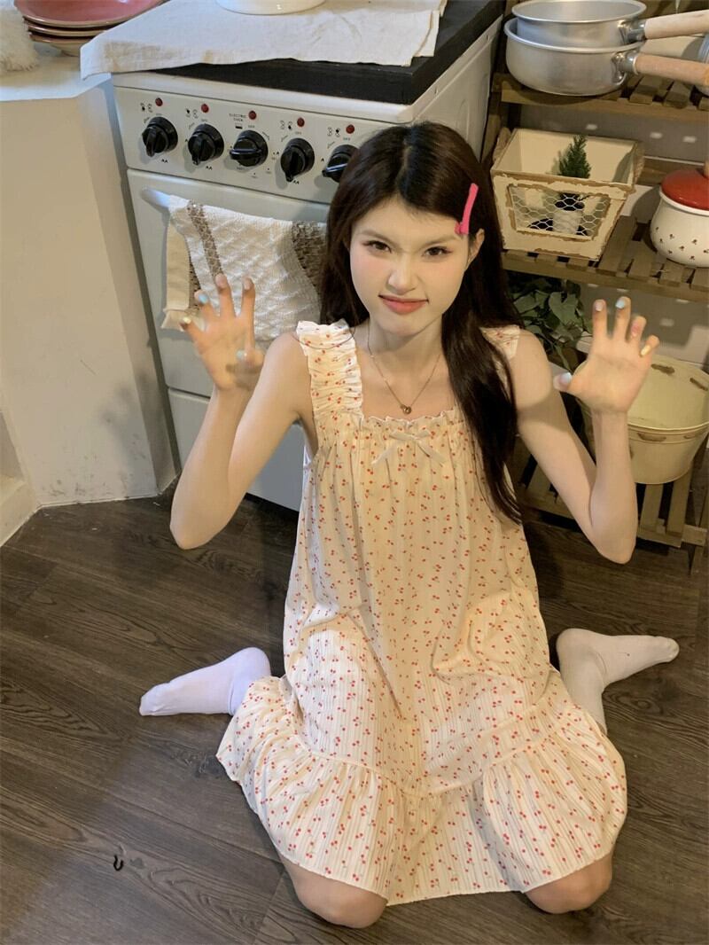 甘いスタイル桜花サスペンダーネグリジェ女性の夏 2024 新しい多用途気質スリムスリムドレストレンディな 大人ガーリー スウィート キュート カジュアル サマー 夏物 花柄 S921918582736960