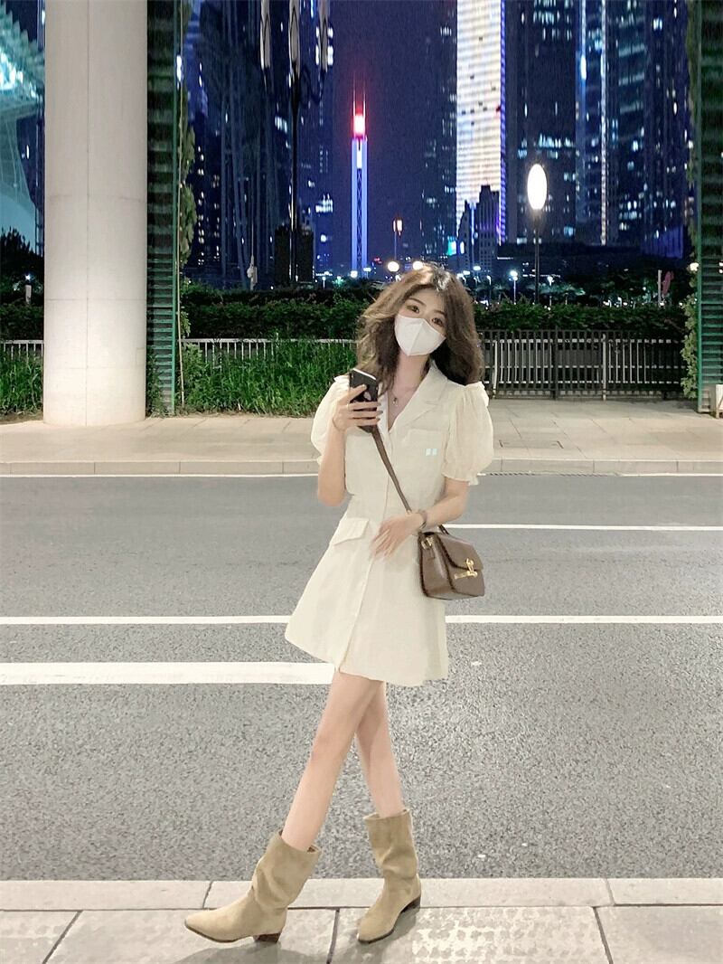 -最後の気質中空デザインスーツドレス女性の夏の 2024 新しいシックなファッションウエスト A ラインスカート サマー 夏物 Aライン S921986890314057