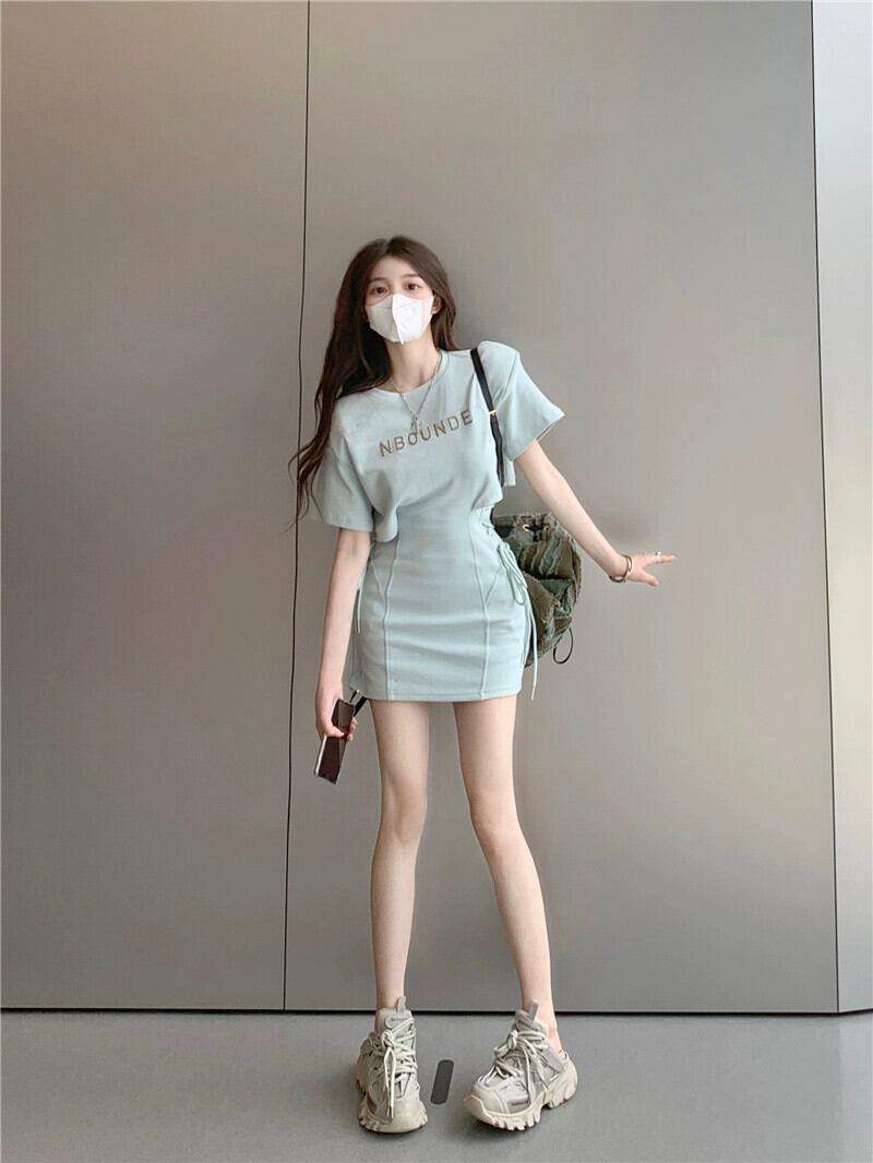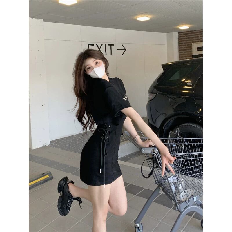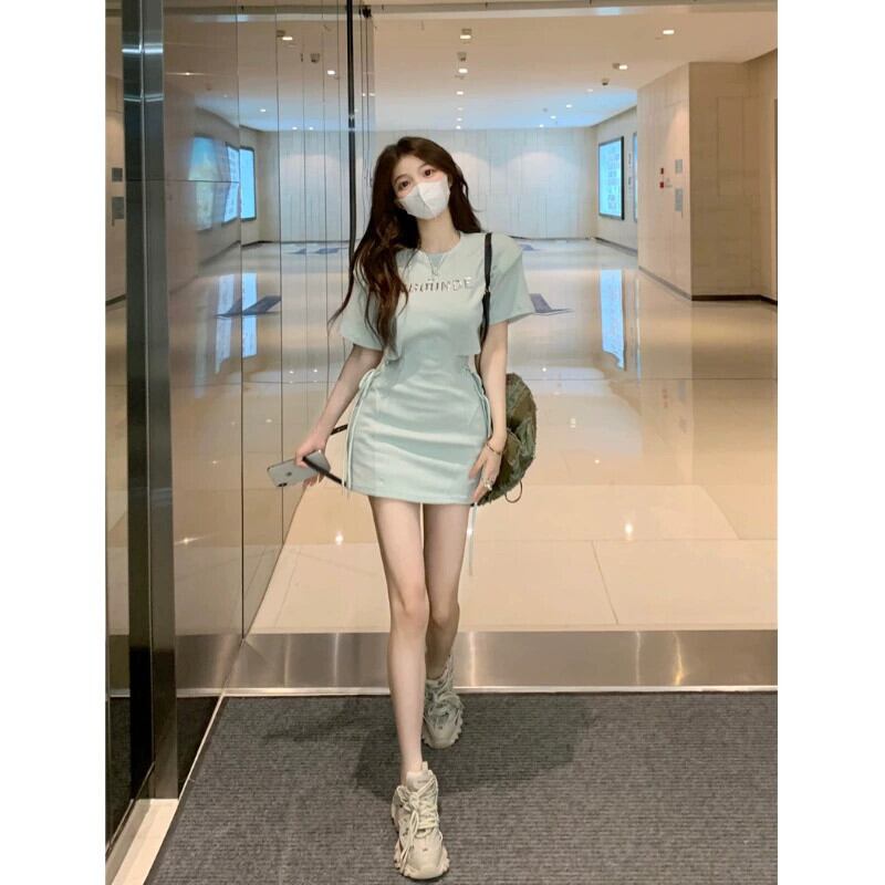 ed スタイルレタープリント半袖ドレスの女性の夏 2024 新しい中空ストラップウエストスカート サマー 夏物 S921998604412954