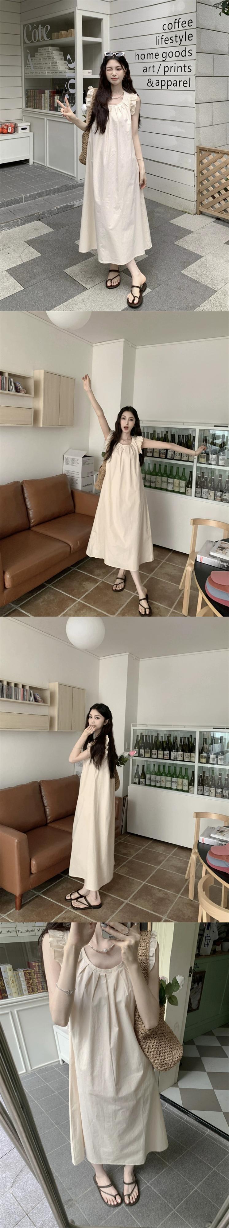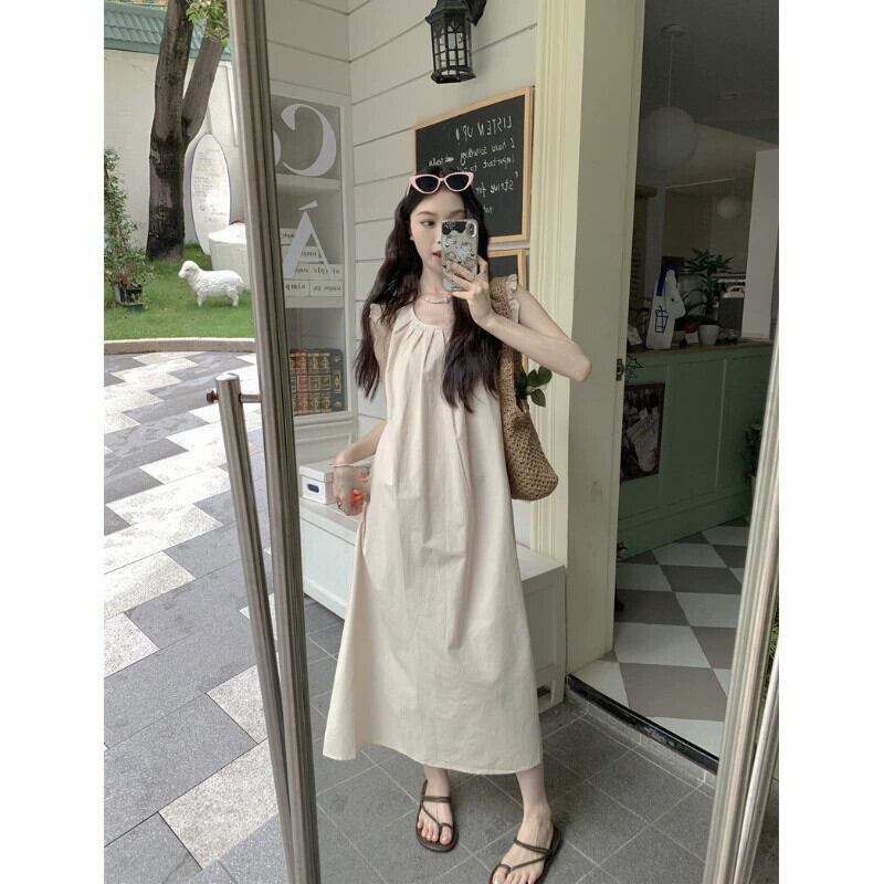 フレンチリゾートスタイル小さなフライングスリーブドレス女性の夏の2024新しいルーズカジュアルロングスカート優しい気質スカート サマー 夏物 S921919333582580