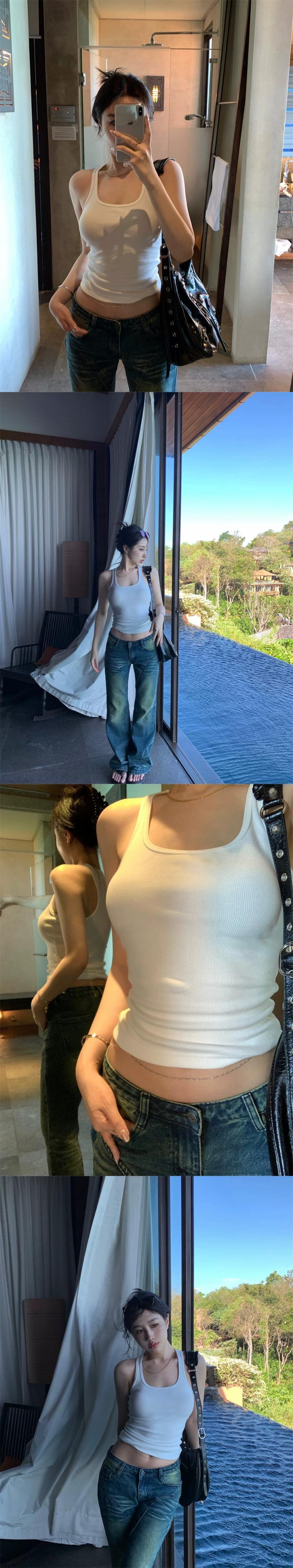 脇胸をカバーする純粋な欲望スタイルの幅広ショルダーストラップと夏に女性が着るサスペンダー、内側にレーサースポーツトップが付いたセクシーな白いベスト ホワイト サマー 夏物 ワイドショルダー S921988070035738
