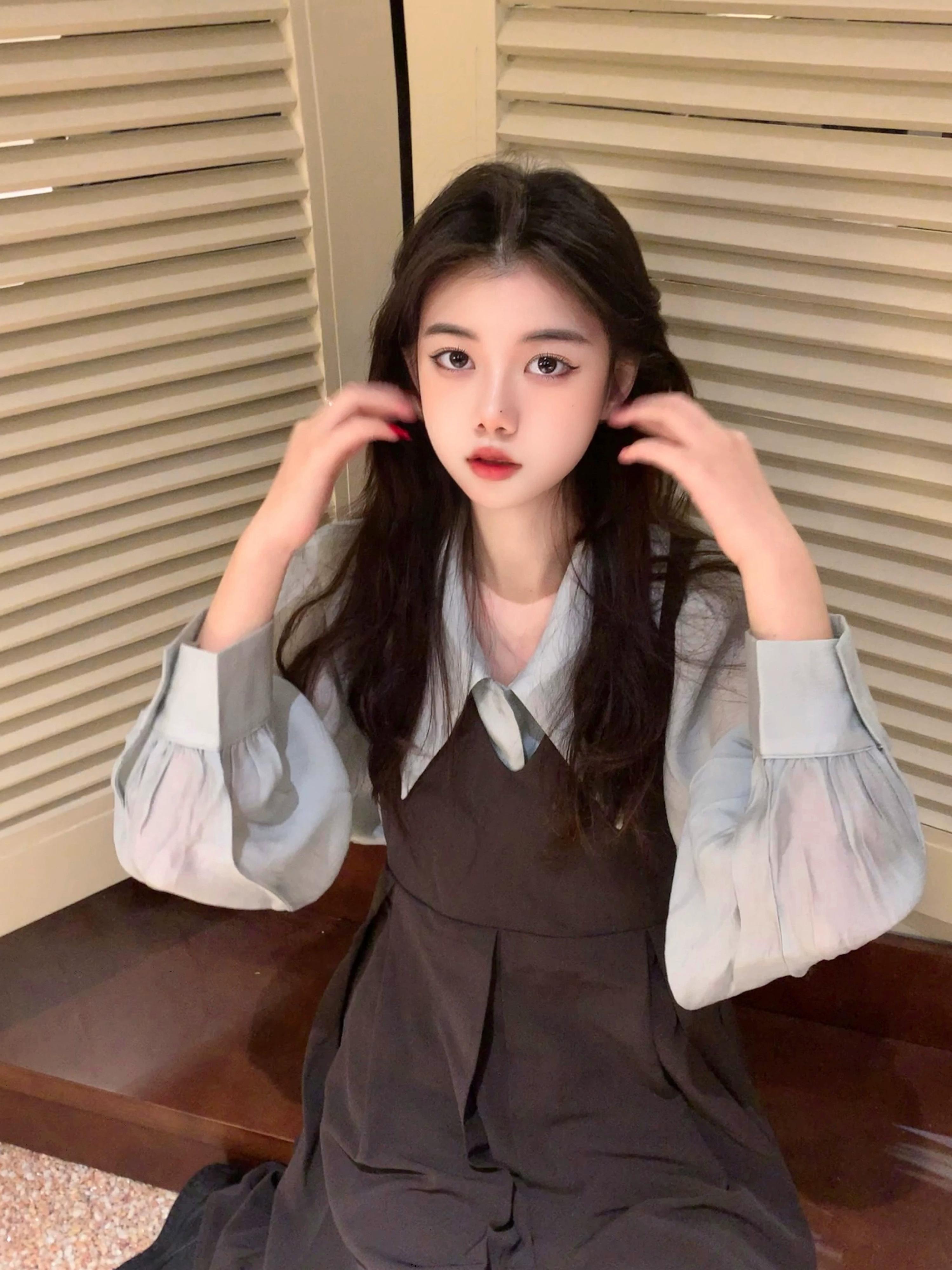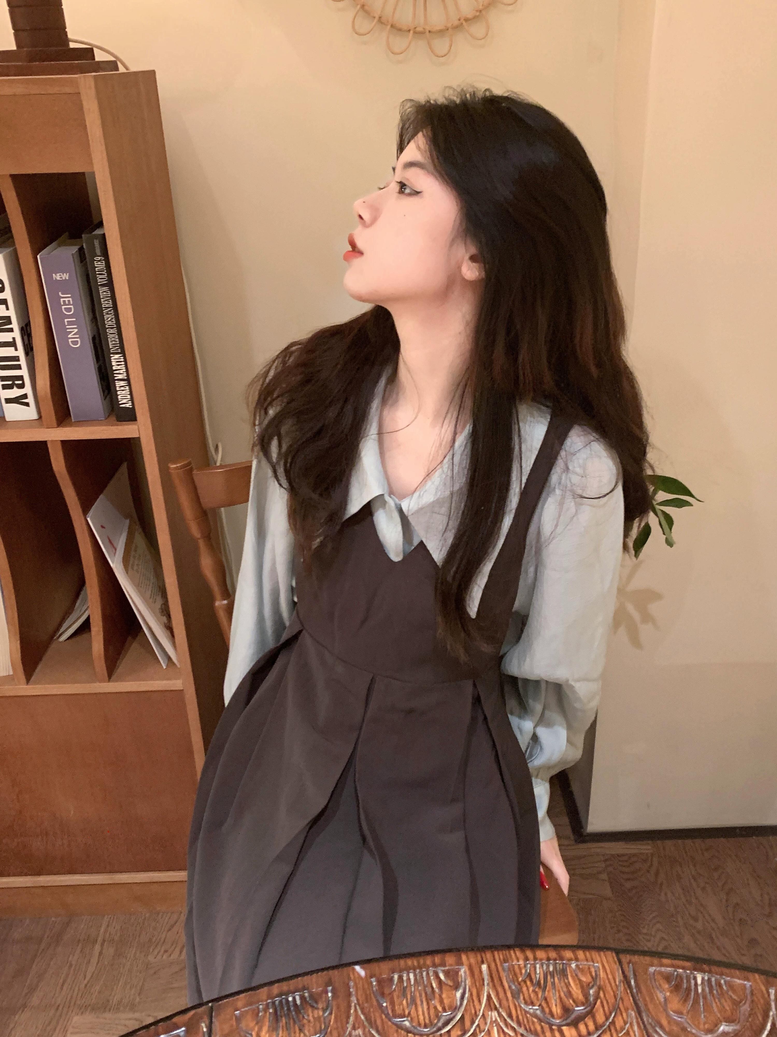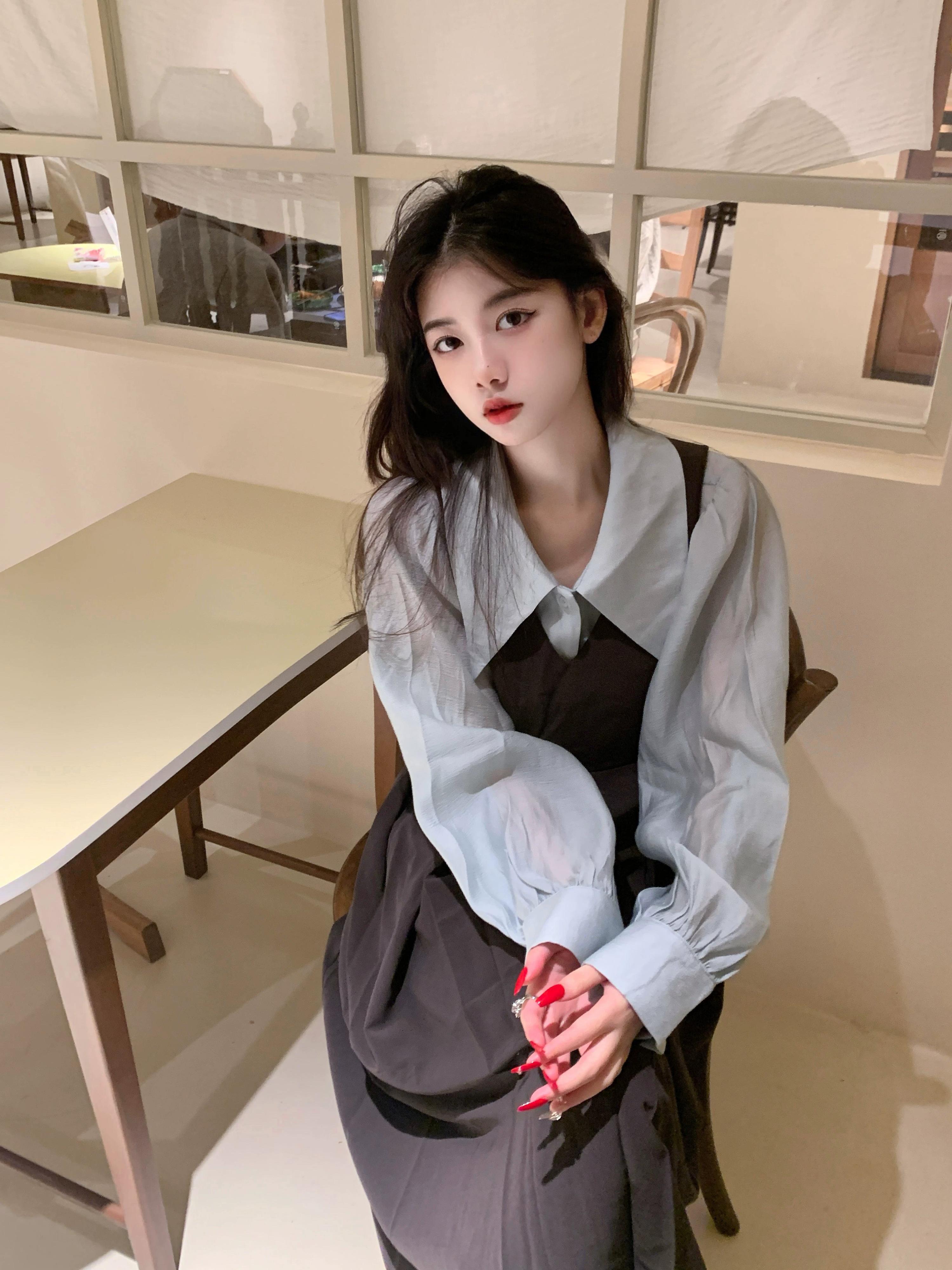 レトロ y スーツ女性夏 2024 新しいブルードールカラーシャツベストスカートツーピースセット サマー 夏物 S921988234173174